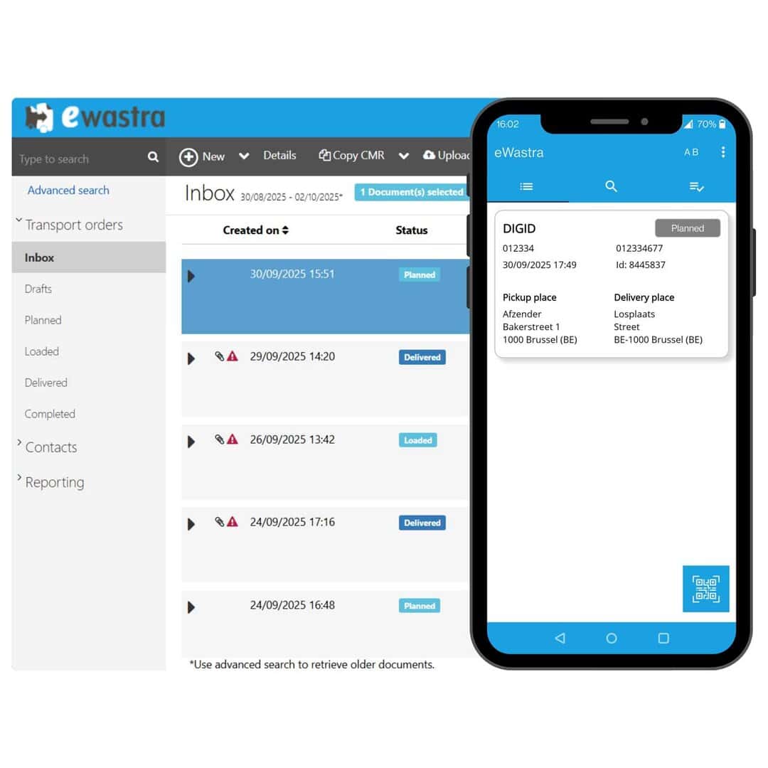 In eWastra creëer je met enkele kliks je juridische transportdocumenten, volg je de status realtime op en verzamel je ondertekeningen ter plaatse. Chauffeurs werken papierloos via de mobiele app en jij krijgt meteen de juiste data binnen.